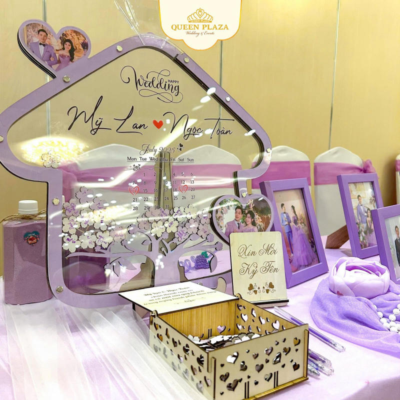 Những chi tiết như sổ ký tên, bảng lời chúc hay khu vực chụp ảnh giúp bàn gallery trở thành nơi tương tác thú vị. Khách mời không chỉ tham dự mà còn trực tiếp góp phần tạo nên những kỷ niệm đáng nhớ.