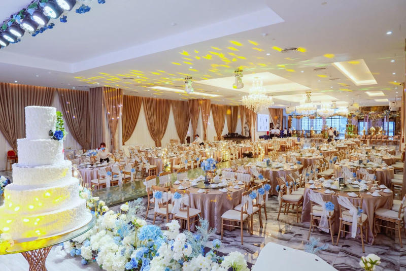 Với diện tích rộng lớn và sức chứa lên đến hàng nghìn khách, nơi đây phù hợp cho các tiệc cưới hoành tráng.