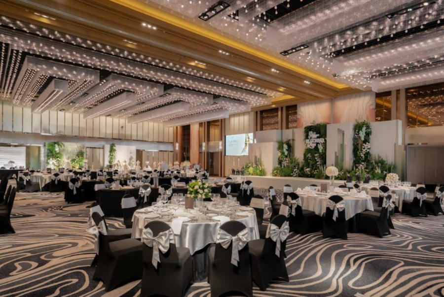 Mỗi sảnh có sức chứa từ 120 đến 350 khách, phù hợp với nhiều quy mô khác nhau. Đặc biệt, 5 sảnh tiệc mang 5 phong cách riêng biệt như Terrace nhẹ nhàng, Diamond rực rỡ hay Ruby nồng ấm… mang đến nhiều lựa chọn để các cặp đôi thỏa sức sáng tạo concept cưới theo dấu ấn riêng.